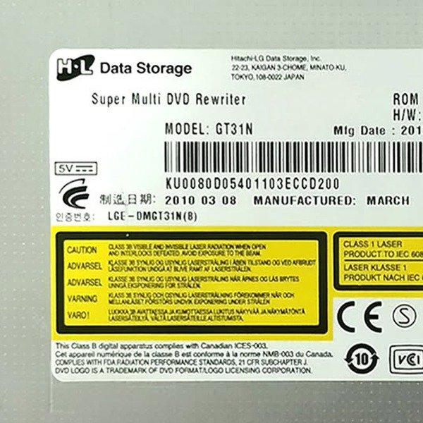 Grabadora DVD original de notebook Hitachi-LG (GT31N). Funciona correctamente. Super Multi DVD Rewriter con velocidades de lectura/escritura compatible con CD y DVD ±R/RW, interfaz SATA Slim y tamaño Slim 12.7 mm (estándar para la mayoría de notebooks). Interfaz SATA Slim (12.7 mm), estándar para la mayoría de notebooks.